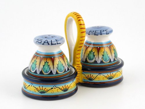 Hand Painted Italian Ceramic Salt & Pepper Shakers Set Vario F1 - Handmade in Deruta