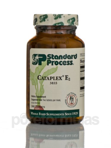 Cataplex E2 360 Tablets by Standard Process. Cataplex E2 contains the vitamin E complex. Vitamin E complex is known for its ability to reduce oxygen consumption of heart and skeletal muscles. It may also increase the oxygen-carrying capacity of the blood.These statements have not been evaluated by the Food & Drug Administration. These products are not intended to diagnose, treat, cure or prevent any disease. Ingredients: Serving Size: 2 Tablets Calories 3 Vitamin E 4 IU 15% Selenium 9 mcg 10% Proprietary Blend: 477 mgBovine orchic extract, calcium lactate, Tillandsia usneoides, bovine spleen, ovine spleen, inositol, bovine adrenal Cytosol extract, oat flour, and ascorbic acid.Other Ingredients: Honey, arabic gum, selenium yeast, mixed tocopherols (soy), and calcium stearate. Dosage: Two tablets per meal, or as directed.